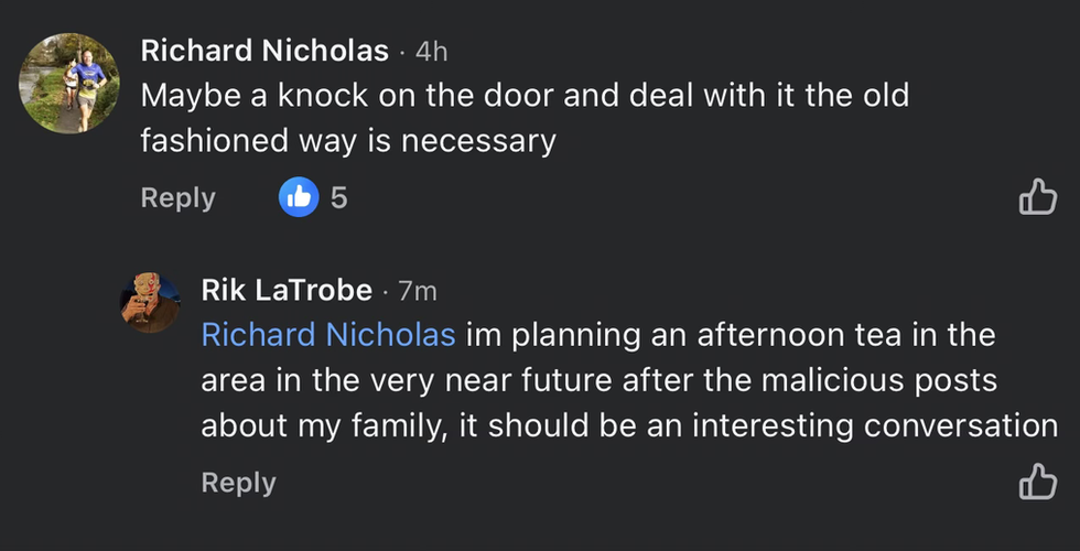Participating in the harassment of individuals based on an incomplete or fabricated narrative is not "community vigilance." It is bullying. It creates a hostile environment that affects families, livelihoods, and mental health. This all began because I was running for Reform at the time (no longer part of the party). Pictured, a community member began a campaign hate to boycott the group and my company - what followed was a campaign of harassment, major research into myself by the community - including dragging stuff up I did when I was a child.